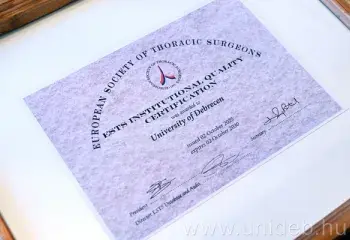 A Debreceni Egyetem Sebészeti Klinika Mellkassebészeti Osztálya ismét megkapta az Európai Mellkassebészeti Társaság (ESTS) akkreditációját, amely igazolja, hogy az intézmény európai szintű ellátást biztosít a betegeknek. Az osztály szakmai tevékenységével először 2012-ben – Kelet-Európában elsőként – érdemelte ki a rangos nemzetközi minősítést. A tanúsítványt azóta ötévente, szigorú feltételek alapján újítják meg.